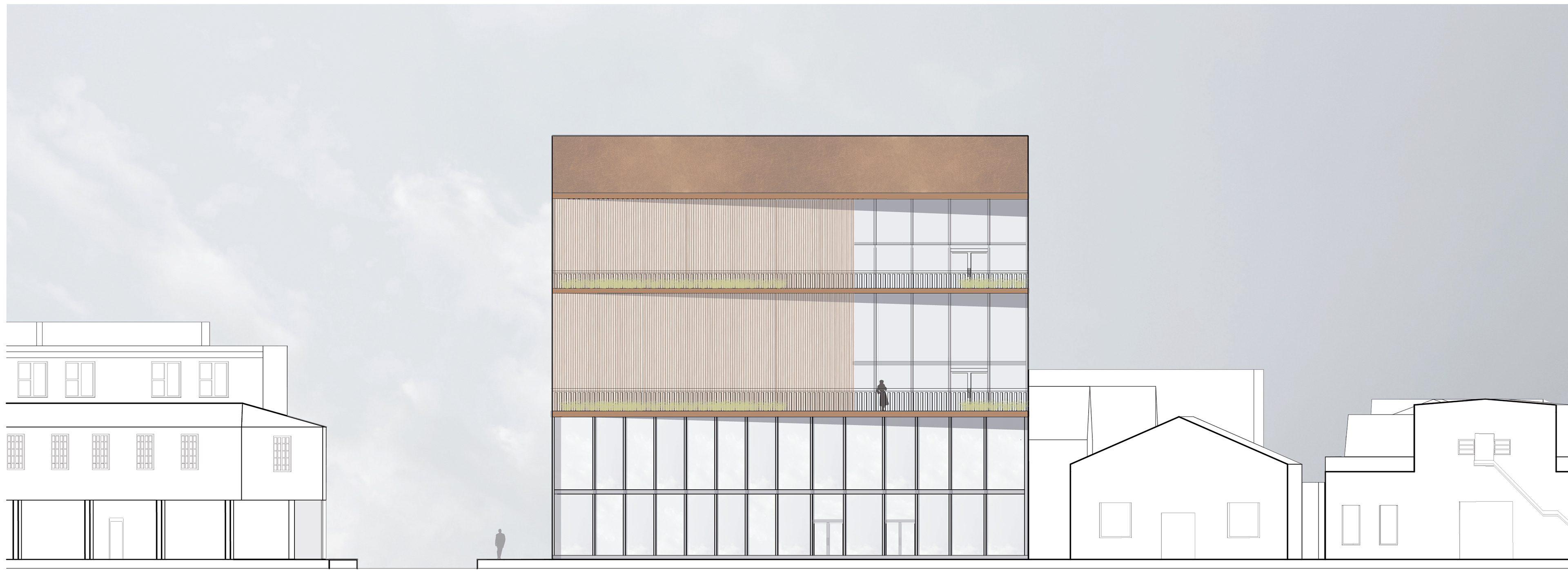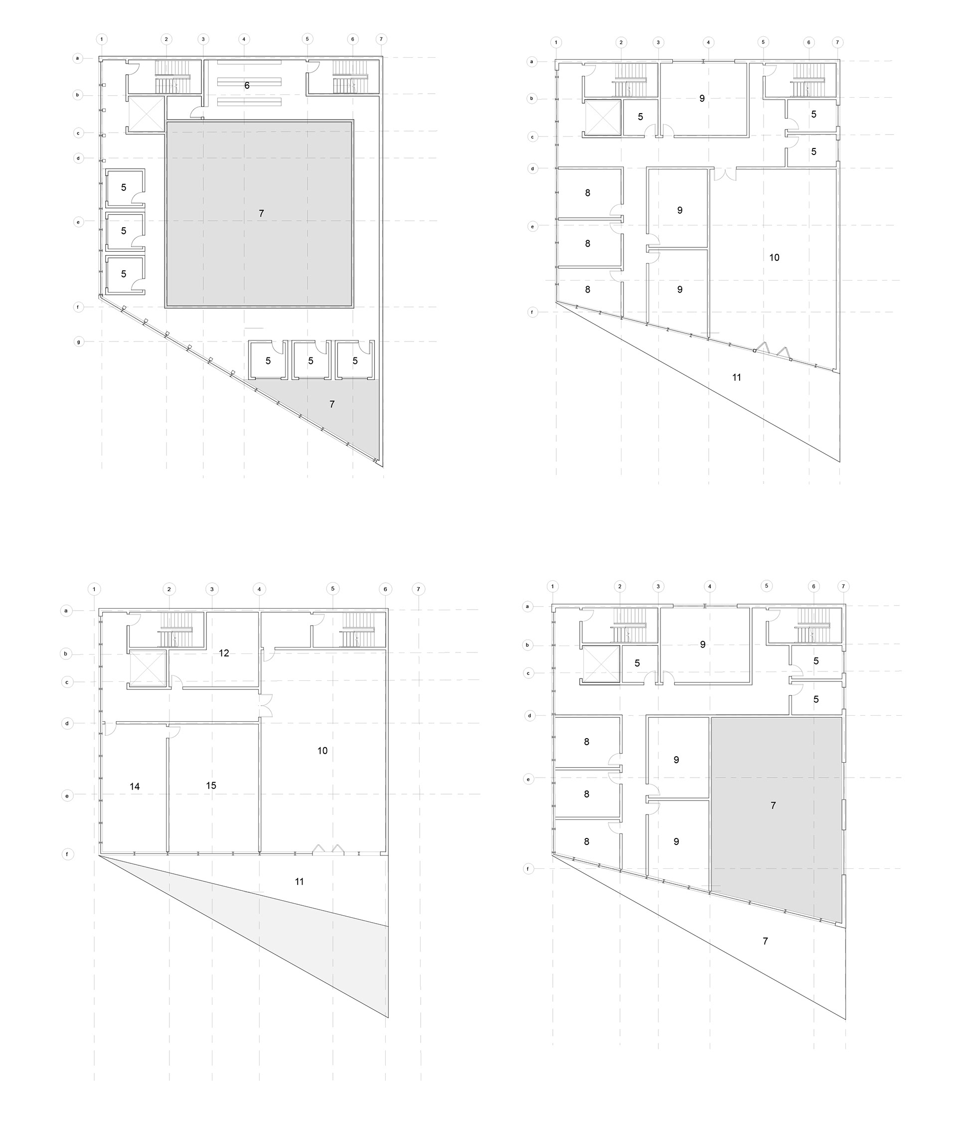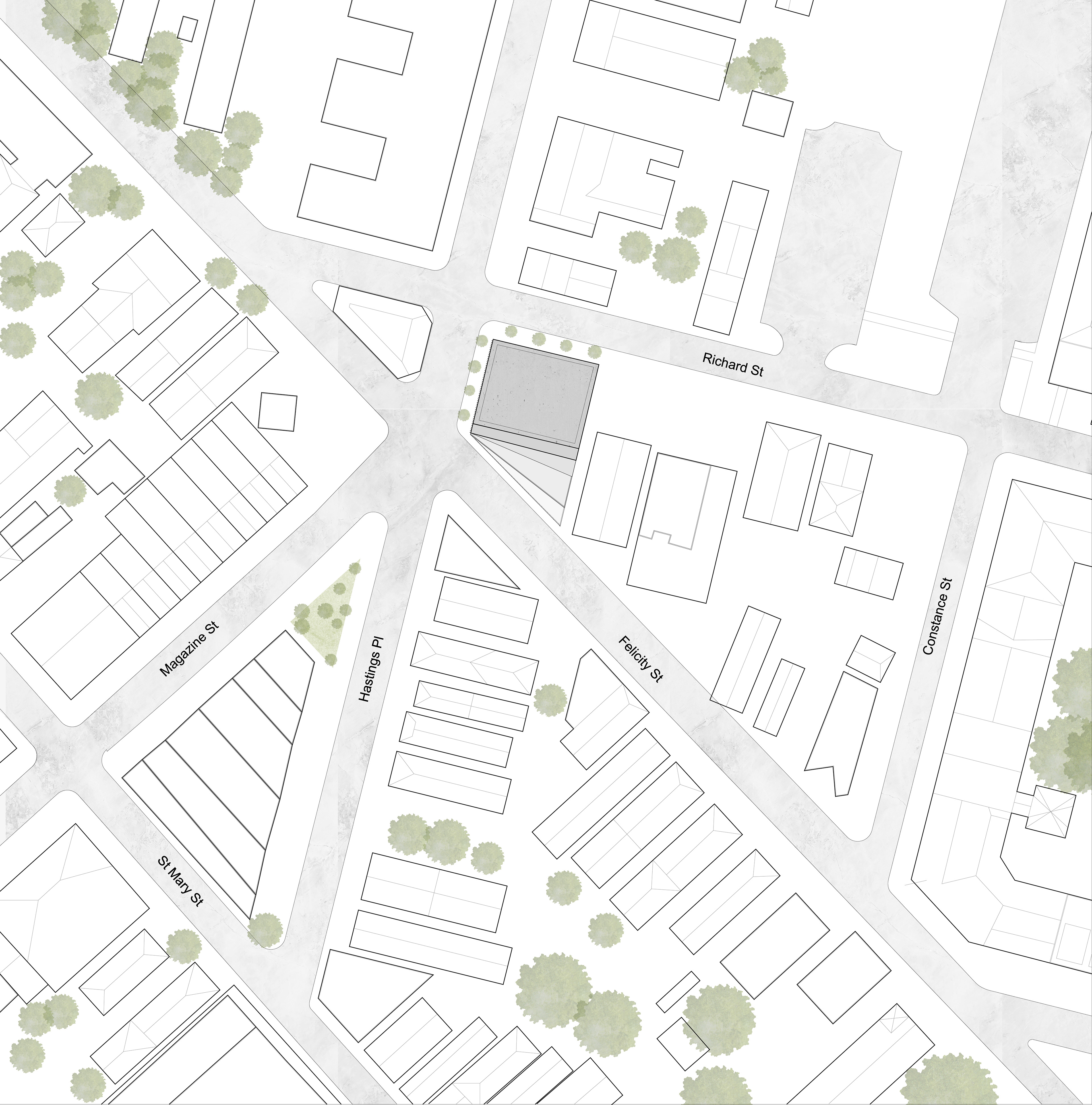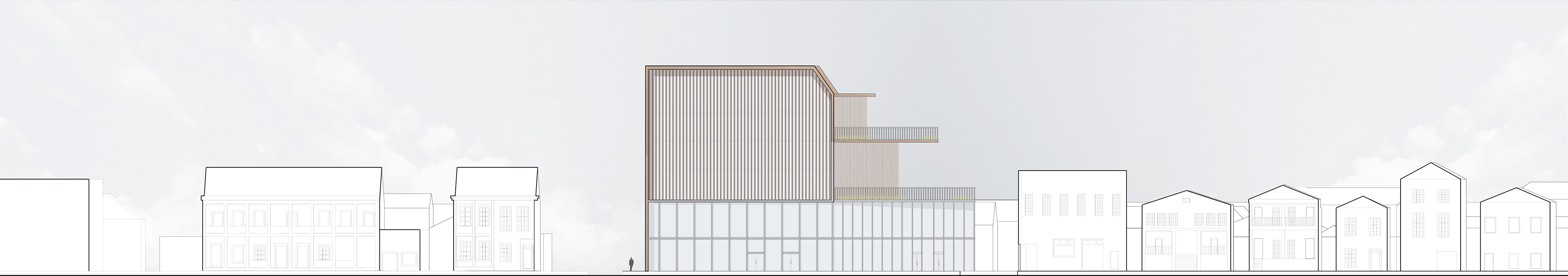 Musical Synthesis, located in New Orleans, Louisiana, is a design proposal for a music school within the Lower Garden District. The project’s main objective is to take elements from the larger context of the city and urban fabric within the surrounding area of the site, in order to create a structure that cohesively blends within them. Through the analysis of New Orleans, the Mississippi River became an important feature in the design and layout of the city with all of the roadways running perpendicularly to it. As a consequence, site boundaries adopted unique geometries, therefore, shaping the city architecture in creative ways. The school takes on the form of the existing site and uses its angle in order to create the most efficient form. Looking to the immediate context, the surrounding area maintains an interesting set of design elements with the use of the Camelback-Style home, multi-level porch, and lower building heights. In order to use these key features, the proposal implements the use of terraces allowing the public to connect with the school as music is being played in the outdoor theater spaces. The glass curtain walls are another design choice that is meant to open up to the street level and creates a blend between the interior of the school and the outside city. In order to shield any harsh natural lighting coming into the building, vertical louvers were placed around the southern and western elevations.