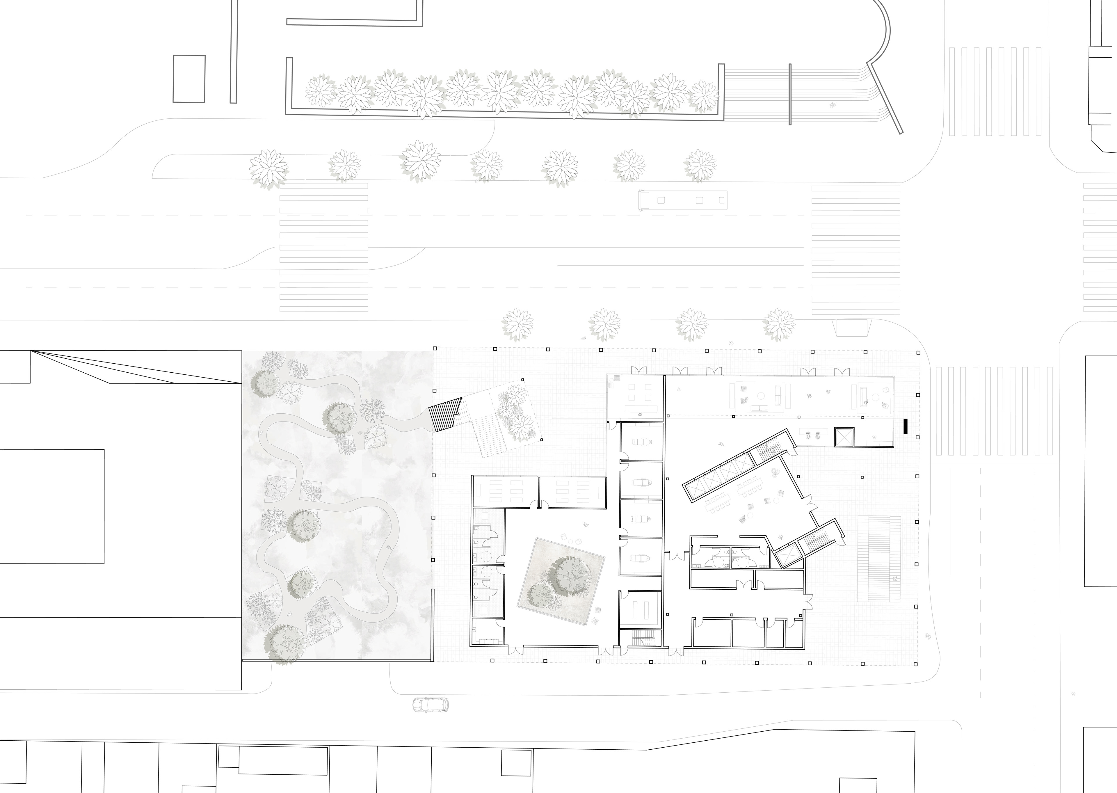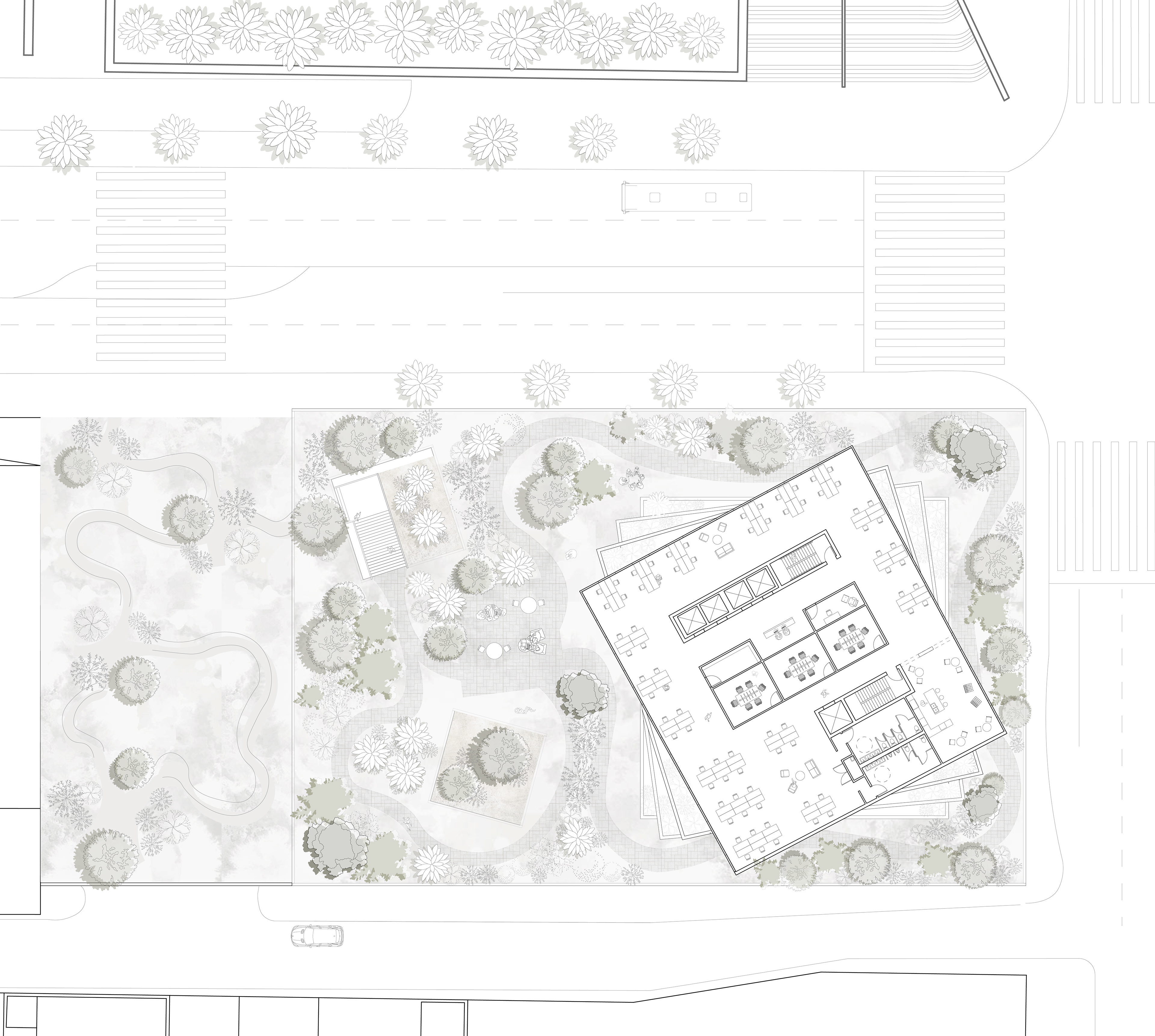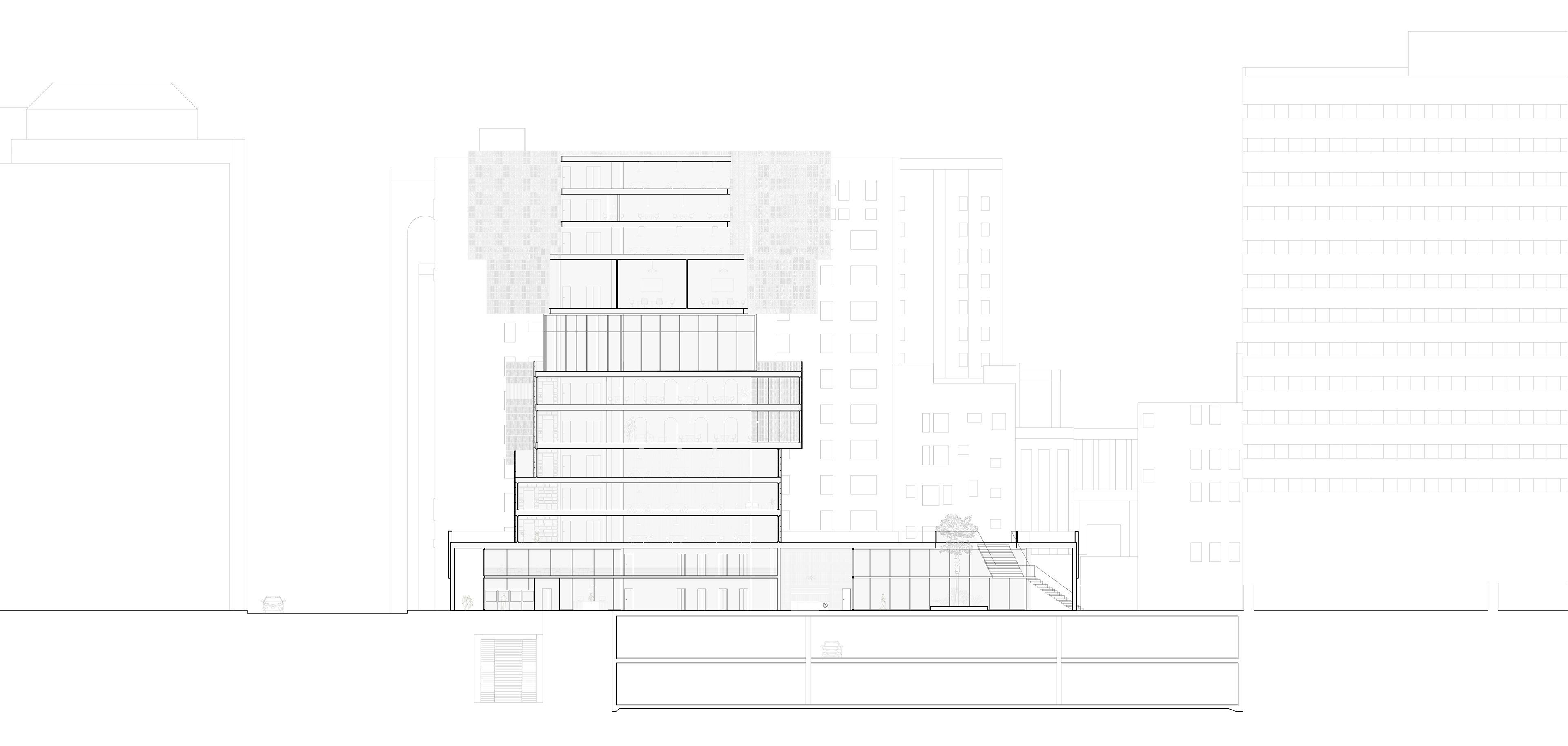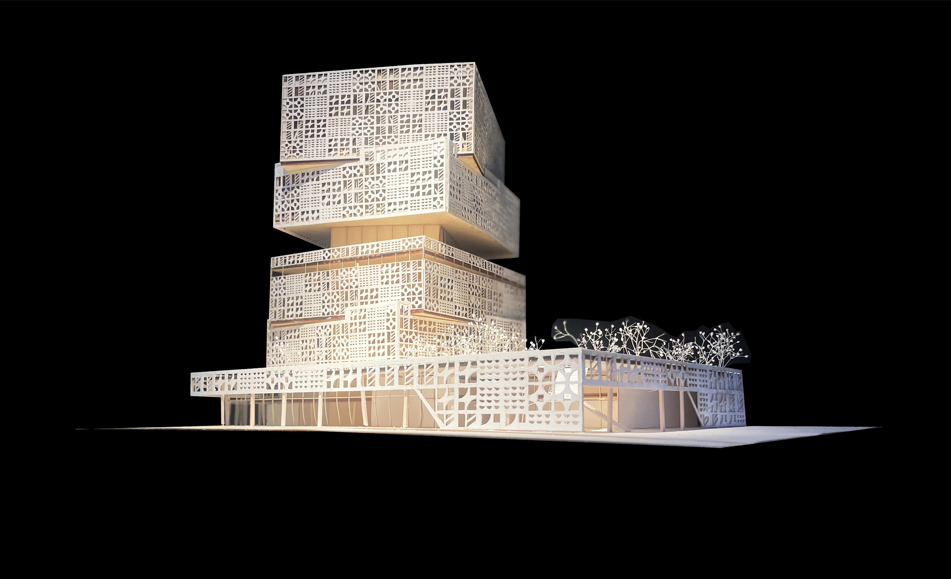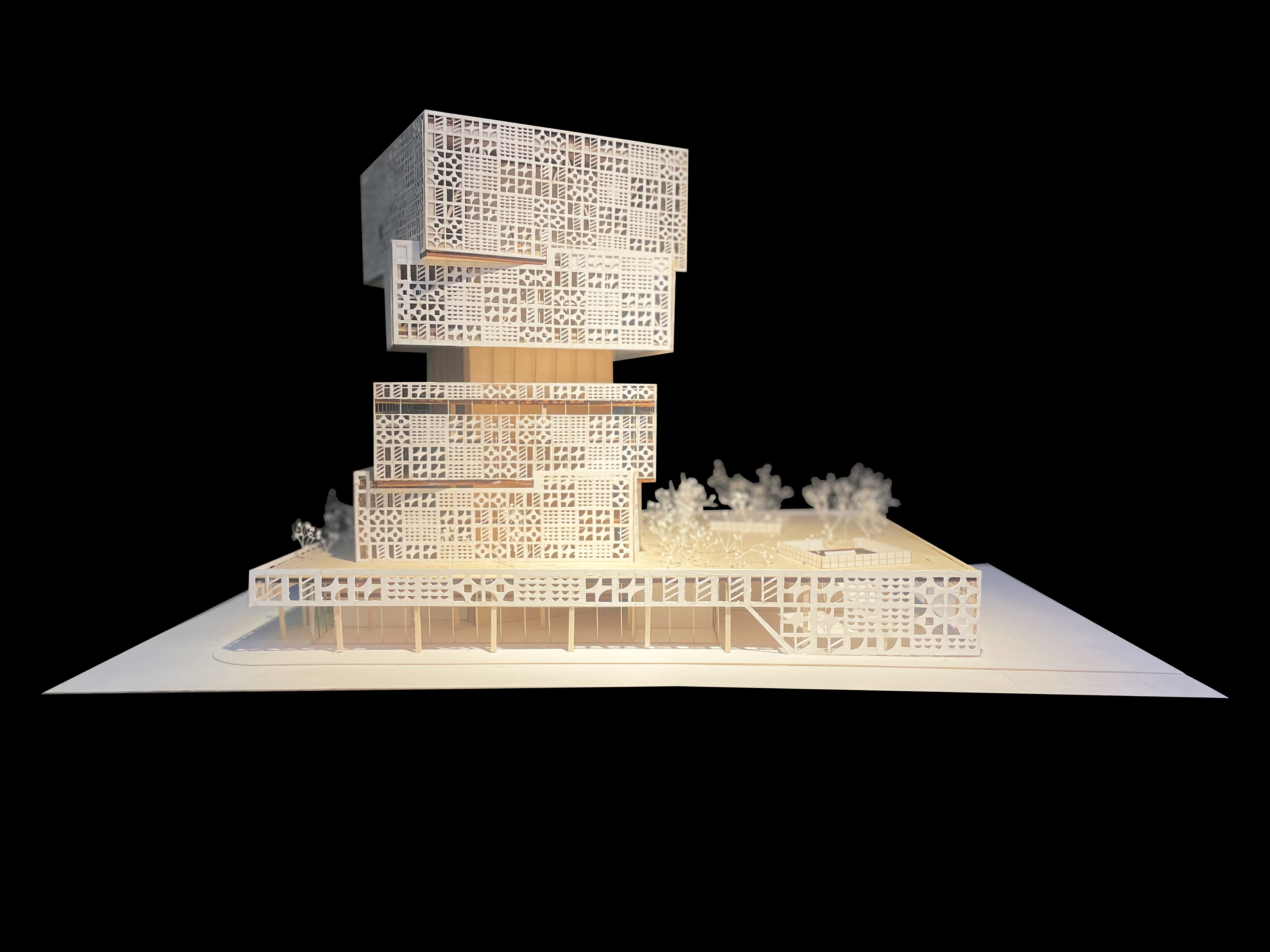 Twisting Ecosystems is an innovative office project in the heart of downtown Los Angeles. The design of the office aims to connect occupants with natural elements through the use of an extensive outdoor terrace, connection to the adjacent park, and a twisted form that removes the rigidity and stoic feel to the tower. and replaces it with more opportunities for light and greenery. There are twelve total floors with retail space occupying the first two levels in order to bring in foot traffic from the street. The exterior facade, made from perforated terracotta panels, eliminates harsh sunlight to maintain energy efficiency and rainwater is collected using cisterns that are then used to water the vegetation on site.